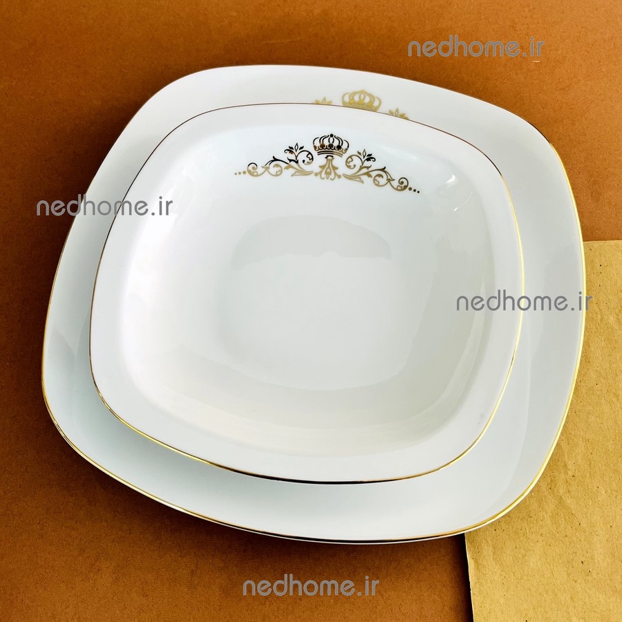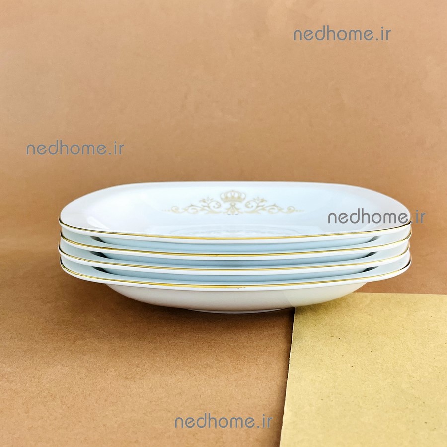 خورش خوری مربع لب طلایی کویین تک چینی زرین🍽️