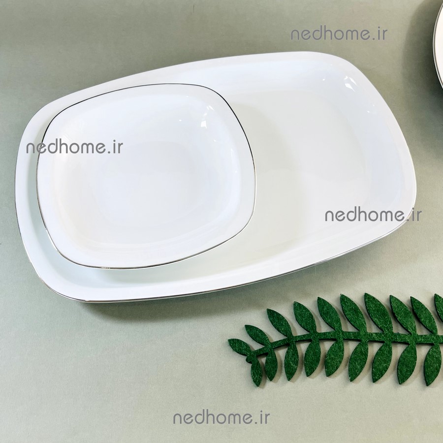 اینجا براتون یکی از بهترین طرح های دیس غذاخوری چینی زرین رو داریم اونم بشقاب لب نقره ای چینی زرین که یکی از پرطرفدار ترین هاست. این مدل در چند قالب تولید میشه که شما می توانید به صورت گرد یا مربع سفارش دهید. خبر خوب هم اینکه هر تعداد که دل تون می خواد می تونید سفارش بدید، حتی یک عدد 🥰دیس تک دور نقره ای مستطیلی چینی زرین بسیار مناسب جهت سرو برنج، مرغ و دیگر غذای های شماست. ✅