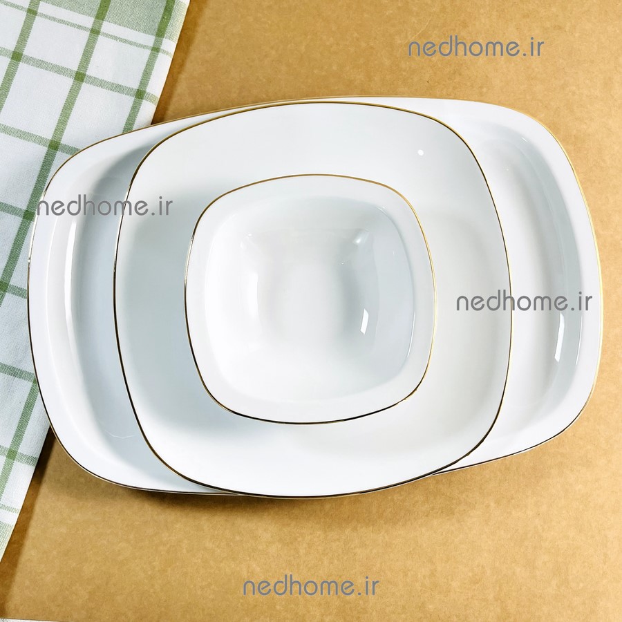 اینجا براتون یکی از بهترین طرح های بشقاب پلوخوری چینی زرین رو داریم اونم بشقاب لب طلایی چینی زرین که یکی از پرطرفدار ترین هاست. این مدل در چند قالب تولید میشه که شما می توانید به صورت گرد یا مربع سفارش دهید. خبر خوب هم اینکه هر تعداد که دل تون می خواد می تونید سفارش بدید، حتی یک عدد 🥰دیس تک زرین کواترو مستطیلی چینی زرین بسیار مناسب جهت سرو برنج، مرغ و دیگر غذای های شماست. ✅ کیفیت بسیار بالا و سفیدی بی نظیر بشقاب پلوخوری لب طلایی مربع چینی زرین، همیشه رضایت مشتریان مون رو در پی داشته است. 🛒✅