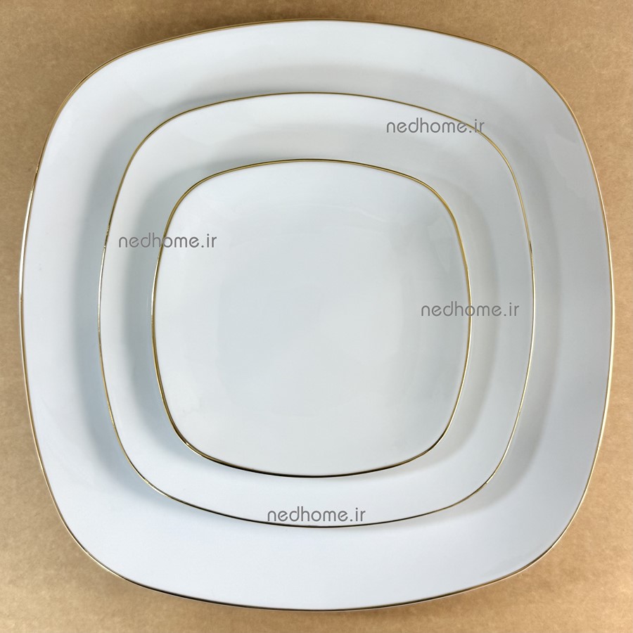 دیس مربع تک چینی زرین طرح لب طلایی کواترو – درجه یک