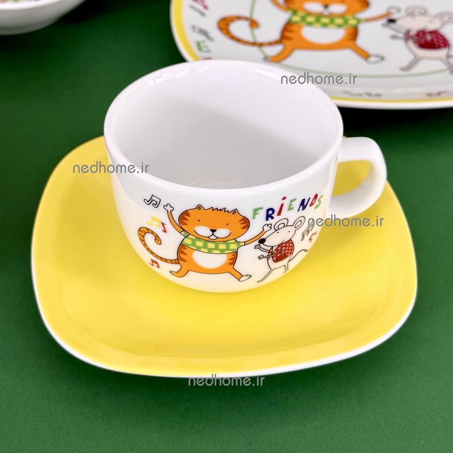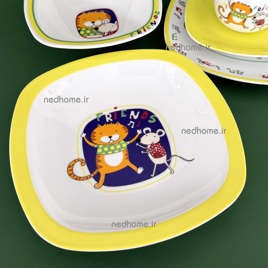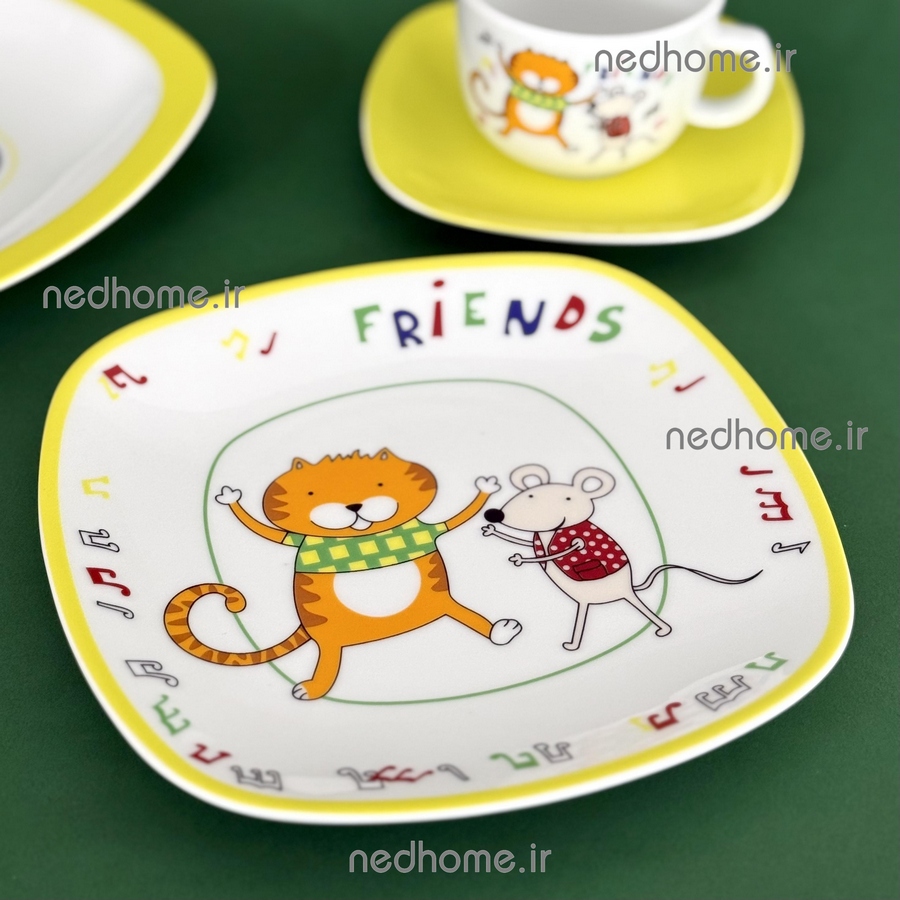 با انتخاب سرویس کودک دوستان، تک تک لحظات صرف غذا را برای فرزندتان به جشنی شادی بخش و سرگرم کننده تبدیل کنید. موش و گربه مهربان و با وفای این سرویس، همواره آماده اند تا سرگرم کننده ترین لحظات را برای فرزندتان رقم بزنند و او را در دنیایی از رنگهای شاد و انرژی بخش، دوستی های ابدی و جشنهای بیپایان، با خود همراه سازند. اکنون میتوانید با خیال راحت کنار فرزندتان بنشینید و از خیال پردازیهای شیرینش با این شخصیتهای دوست داشتنی و رضایتش از خوردن دستپخت پر مهرتان، درون ظروفی با کیفیت و دوستدار سلامتی، لذت ببرید.