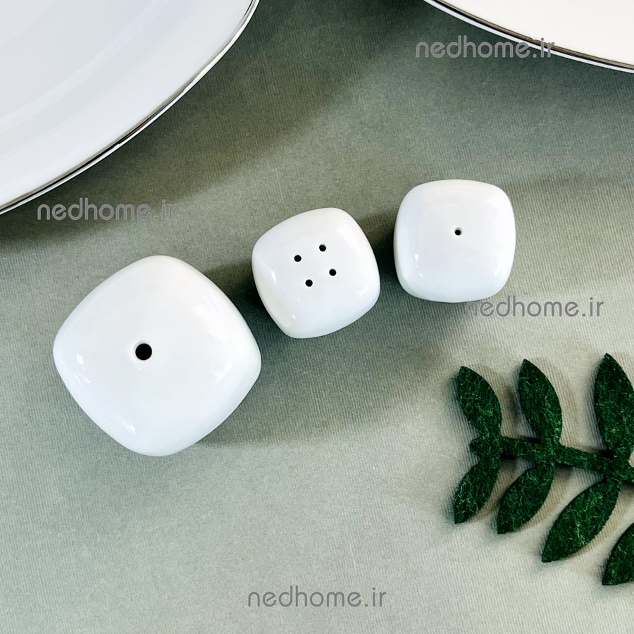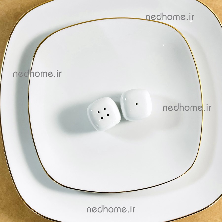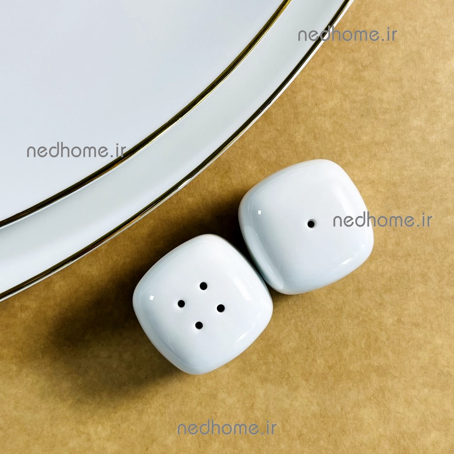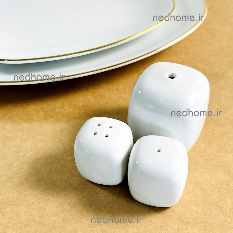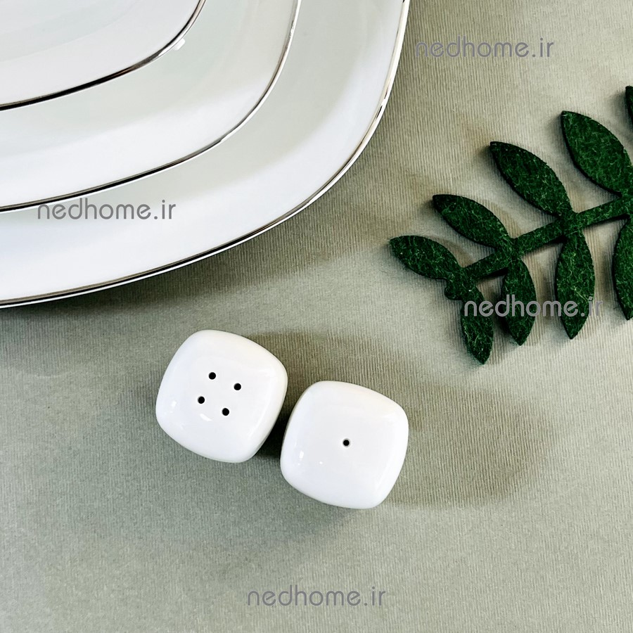 نمکپاش و فلفل پاش سفید مربع چینی زرین🌻☀️💛