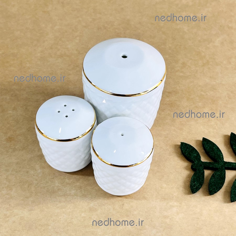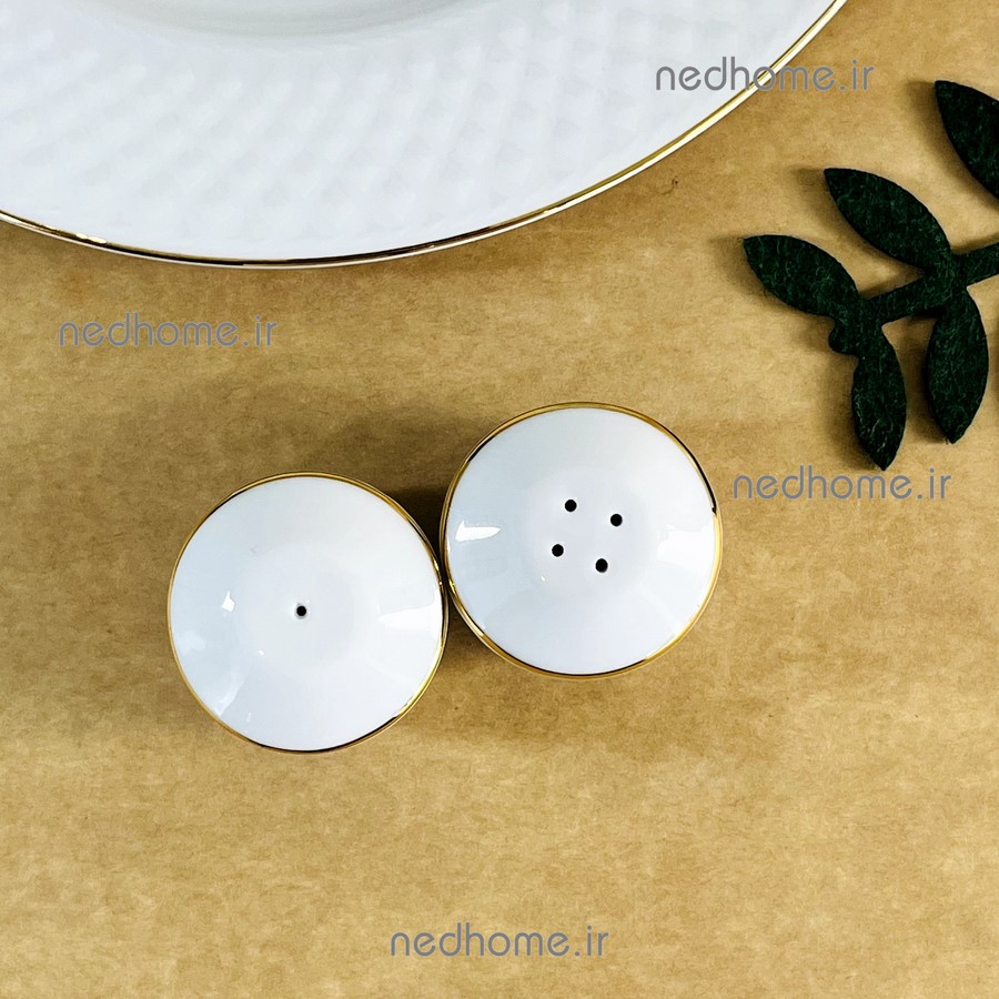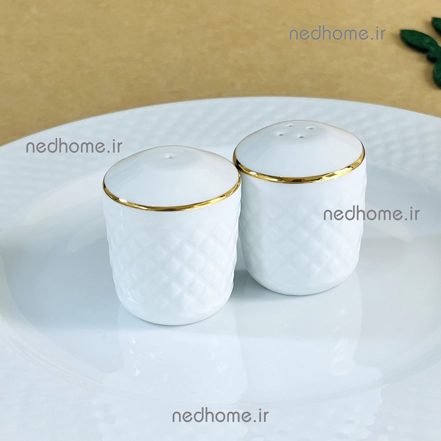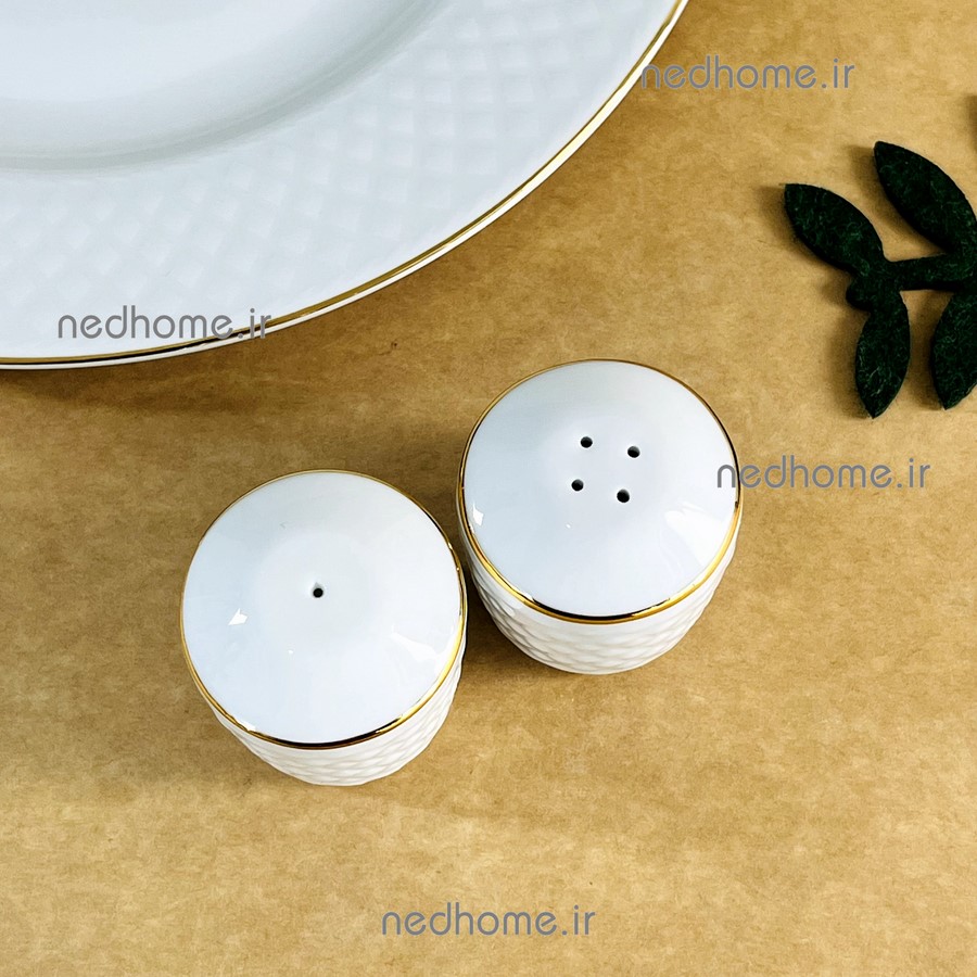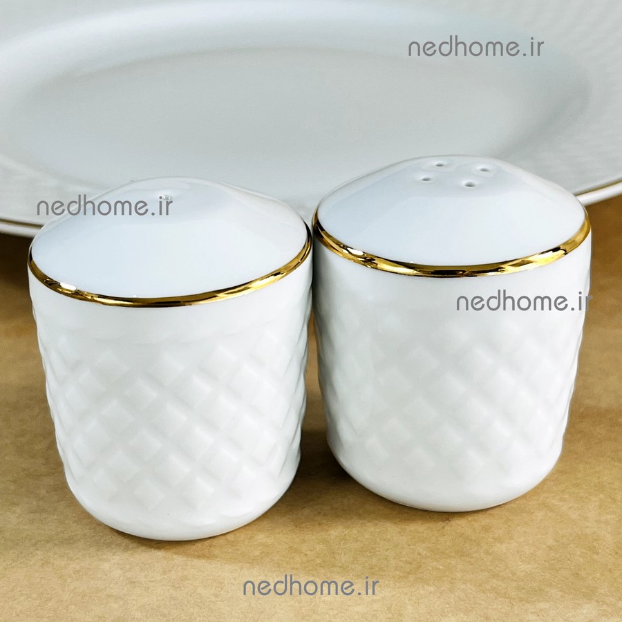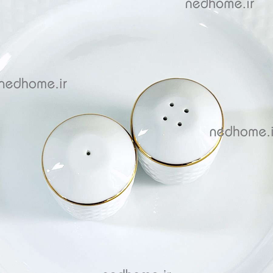 نمکپاش و فلفل پاش جفتی چینی زرین طرح لب طلایی رادیانس